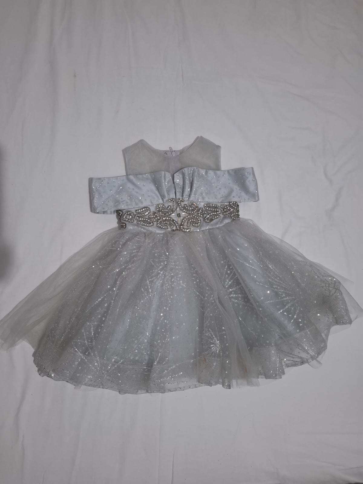 שמלה נפוחה עם שכבות טול ונצנצים.